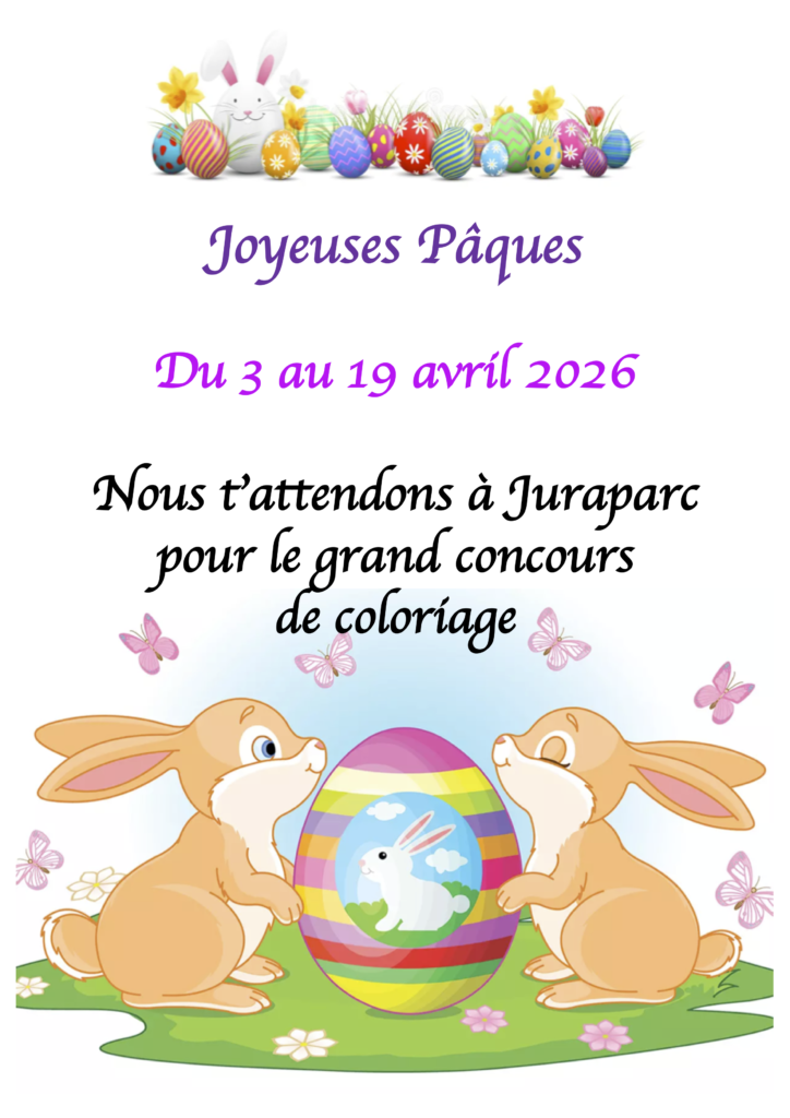 Viens choisir un dessin à Juraparc ou imprimes-le depuis notre site. Une fois terminé et tes coordonnées remplies, tu pourras le retourner par poste ou venir le déposer à la boutique. Ton œuvre sera affichée et le tirage au sort sera effectué à la fin du concours pour tenter de gagner une entrée pour une visite guidée du parc avec nourrissage des animaux pour toute ta famille.